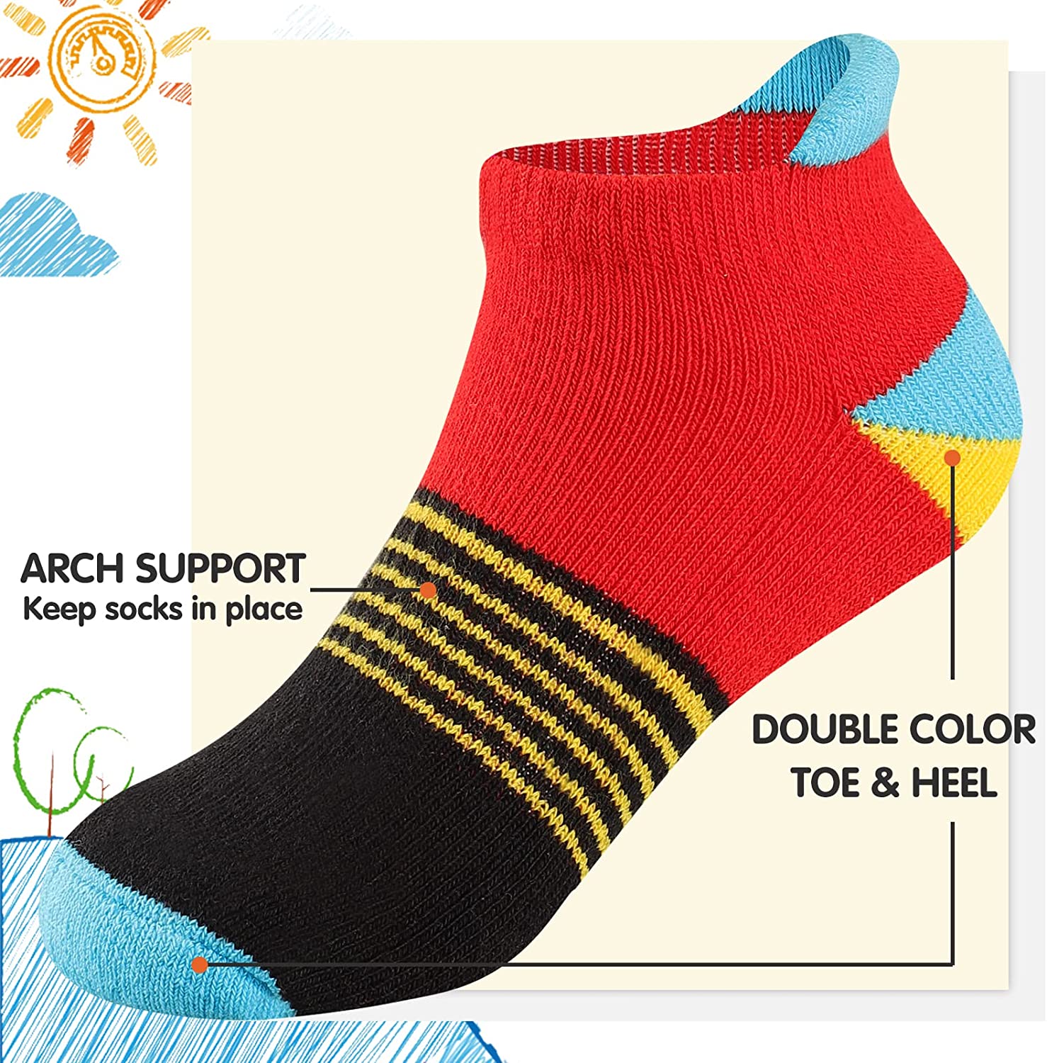 Comfoex Boys' Socks Children's Ankle Socks 4-6 6-8 8-10 Years Short Cotton Semi-Padded Socks 6 Pairs $173.0 |