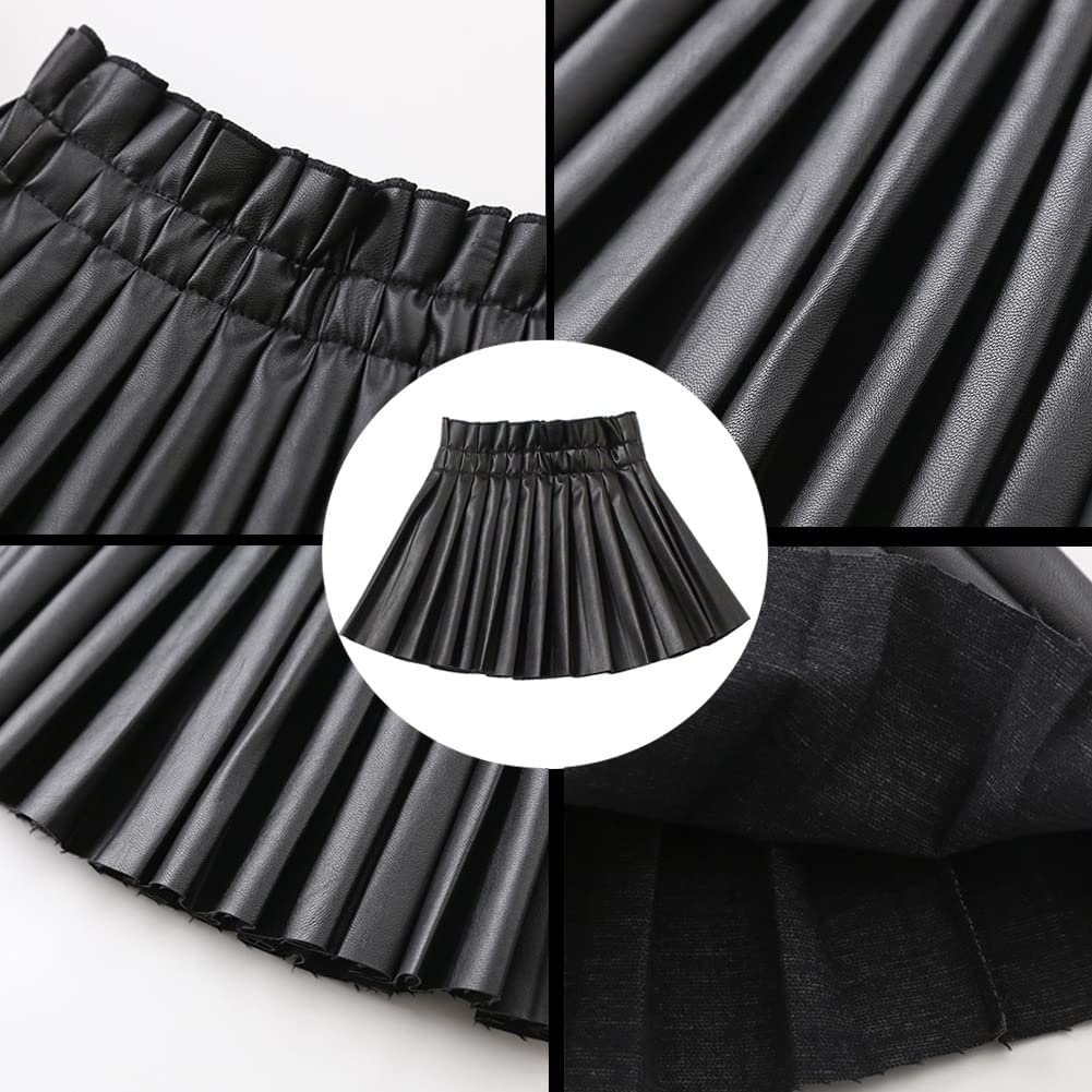 WELAKEN Girls', Teens', Toddlers' & Girls' Pu Leather Skirt Faux Leather Pleated Skirt