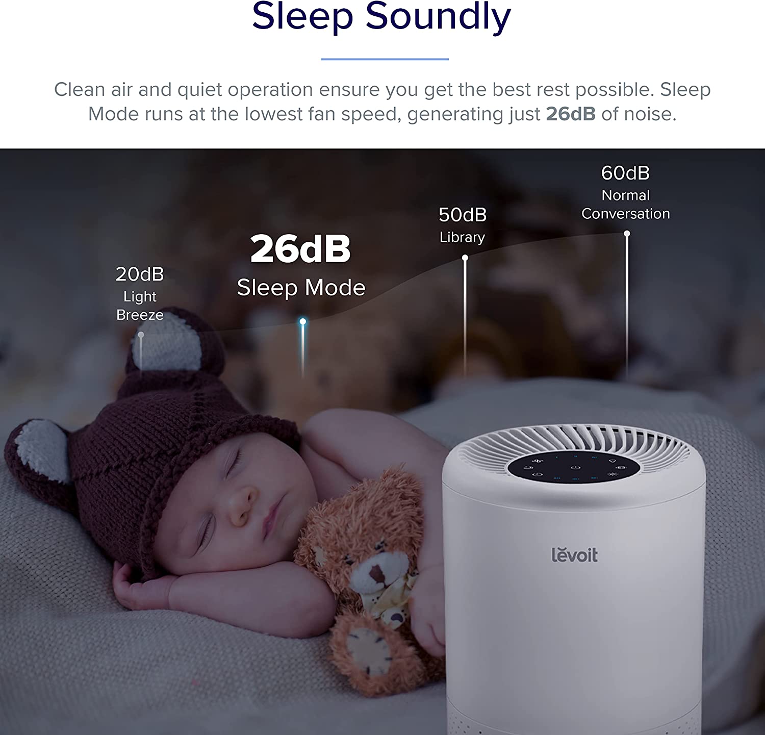 LEVOIT Air Purifier for Household Allergies and Pet Hair, H13 True HEPA Filter, Silent Filtration System for Bedrooms, Removes Wildfire Smoke Smells Dust Mildew, Night Light and Timer, Vista 200, White