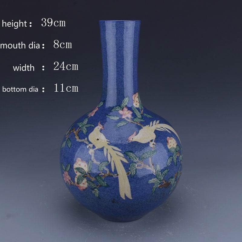 HOUKAI Antique Vase Traditional Chinese Style Blue Ceramic Snowflake Bird Vase Home Office Decoration $15465.0 |