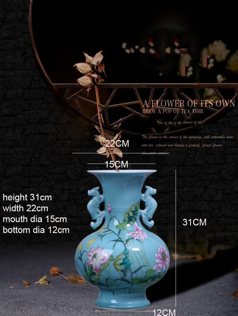 HOUKAI Antique Celadon Vase Setting Supplies Blue Glaze Peony Flower Study Room Decorative Ceramic Crafts $17522.0 |