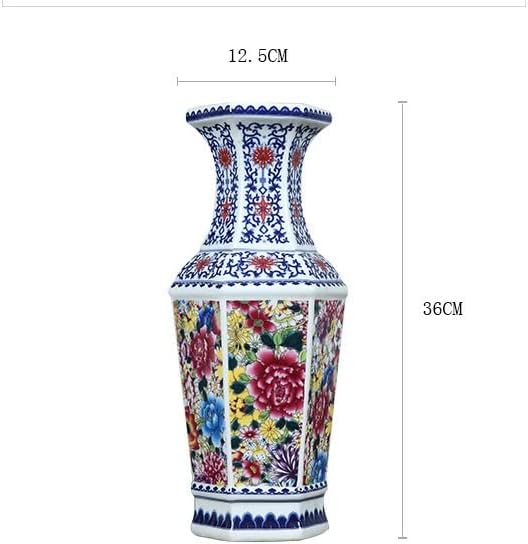 ZSEDP Antique Ceramic Vase Hexagonal Vase Celadon Chinese Living Room Flower Decoration Crafts
