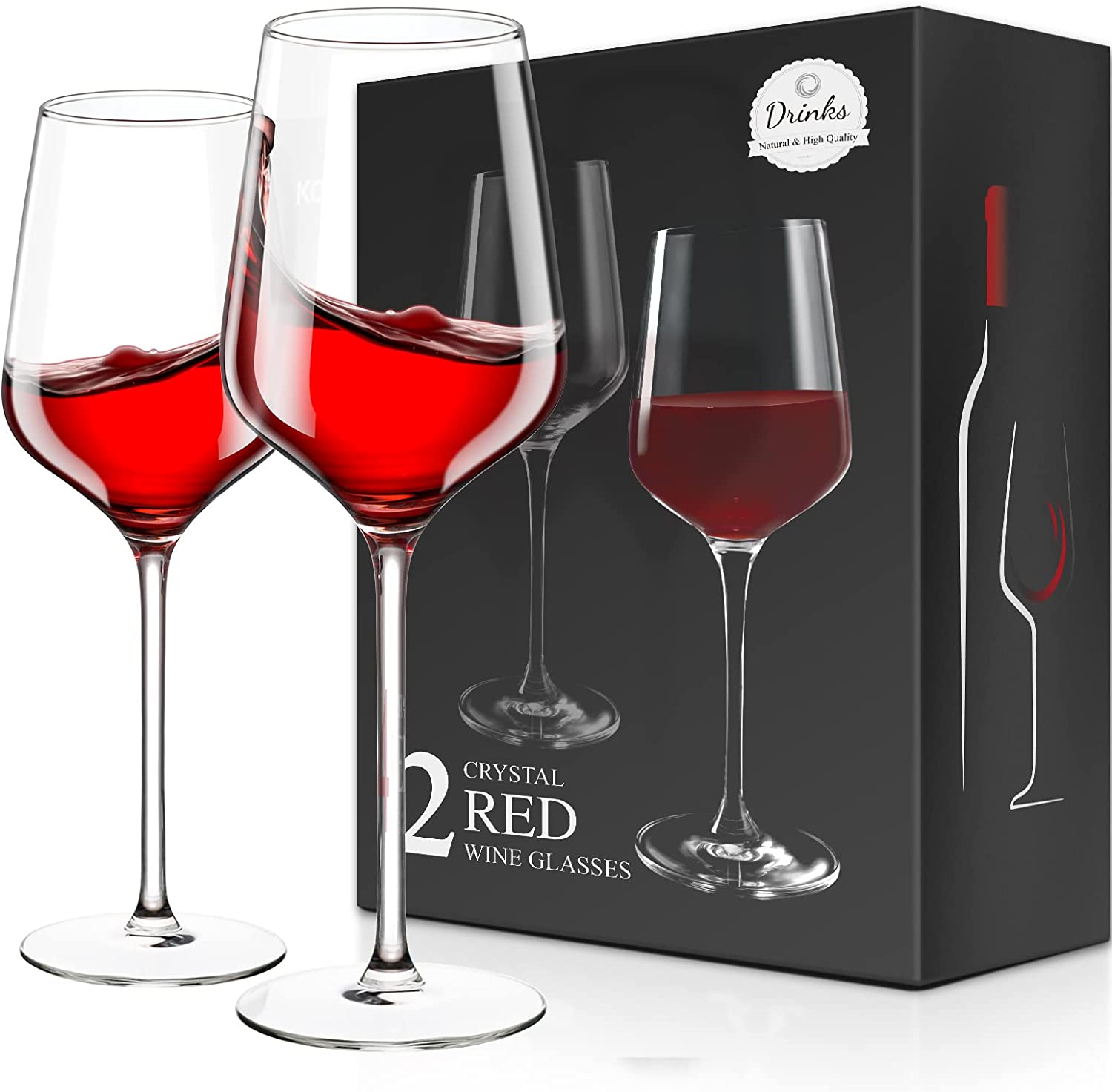 Maxboro Red Wine Glasses Set of 2, Hand Blown Lead-Free Burgundy Wine Glasses, Long Stemmed Wine Glasses for Wine Tasting, 15.2 oz $41.0 |