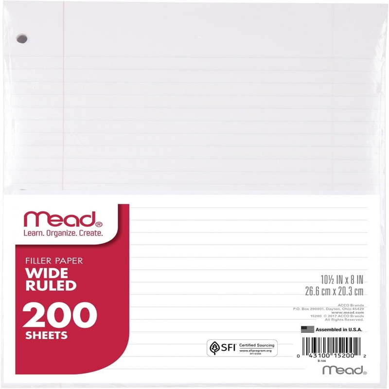 Mead Looseleaf, Wide Grid Paper, 200 Sheets, Standard 10-1/2 x 8, Lined Filler Paper, 3 Punch Holes for 3 Binders, Writing and Office Paper, College, K-12 or Homeschool, 1 Pack ( 15200) , White
