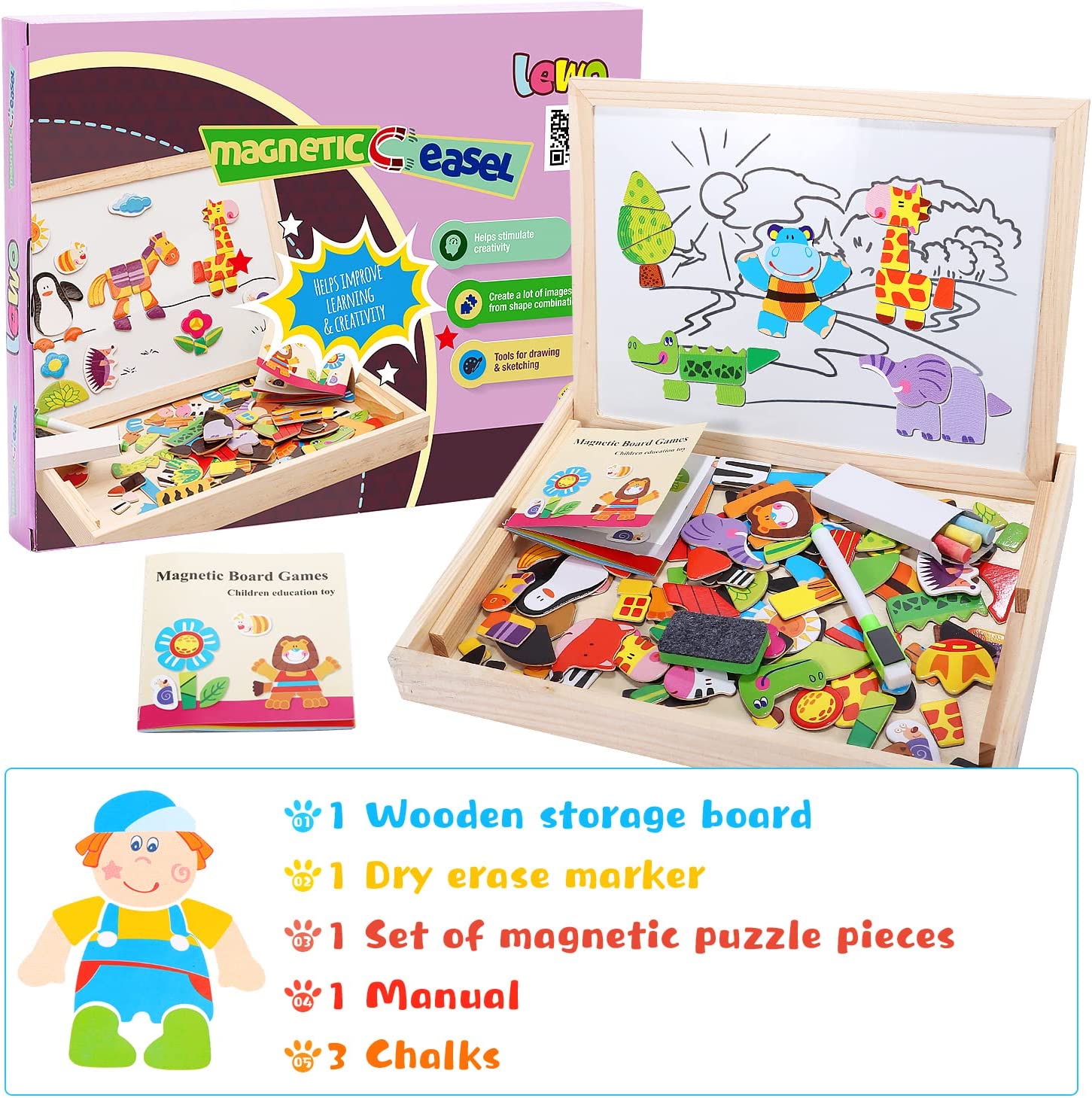 Lewo Wooden Puzzle Toys Magnetic Art Easel Animal Wooden Jigsaw Puzzle Kids Games $52.0 |