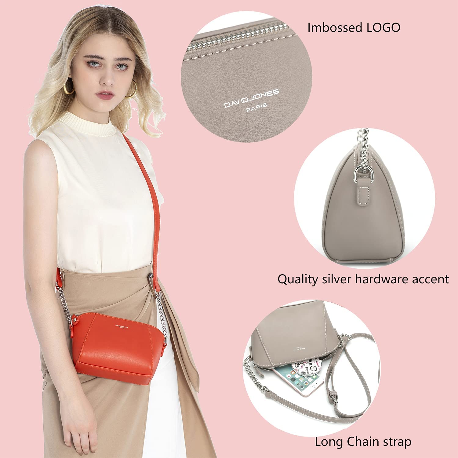 DAVIDJONES Women's Small Crossbody Bag, Vegan Leather Lightweight Chain Shoulder Tote Cell Phone Wallet Purse Wallet
