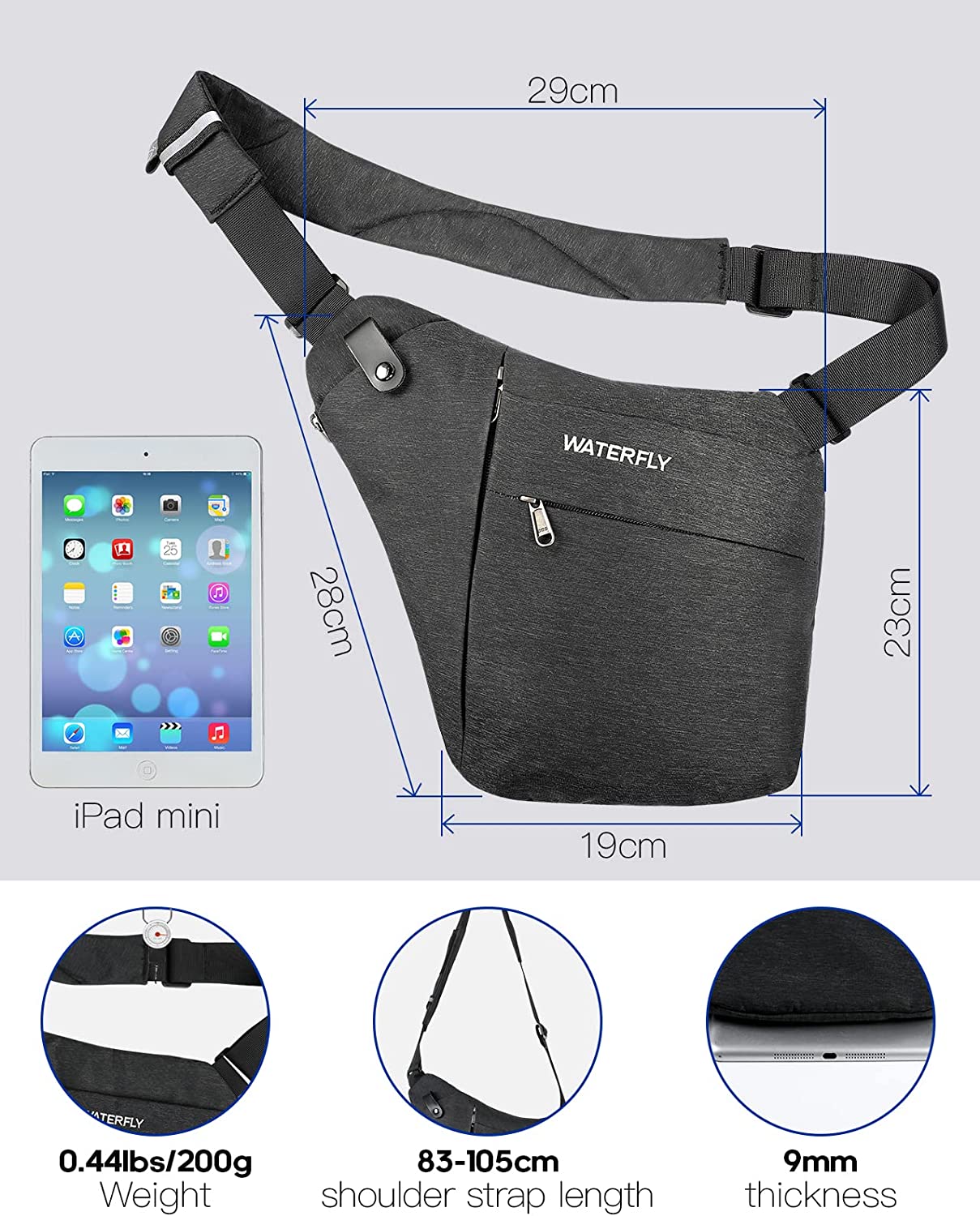 WATERFLY Sling Crossbody Chest Bag: Slim Anti Theft Crossbody Shoulder Bag Invisible Side Bags Men Women
