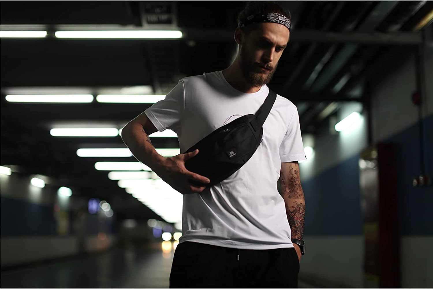 Women's Waist Pack Men's Unisex Waist Pack with Headphone Jack and Zipper Adjustable Shoulder Strap, Black Waist Pack for Outdoor and Outdoor Activity Gym (Waist Pack).