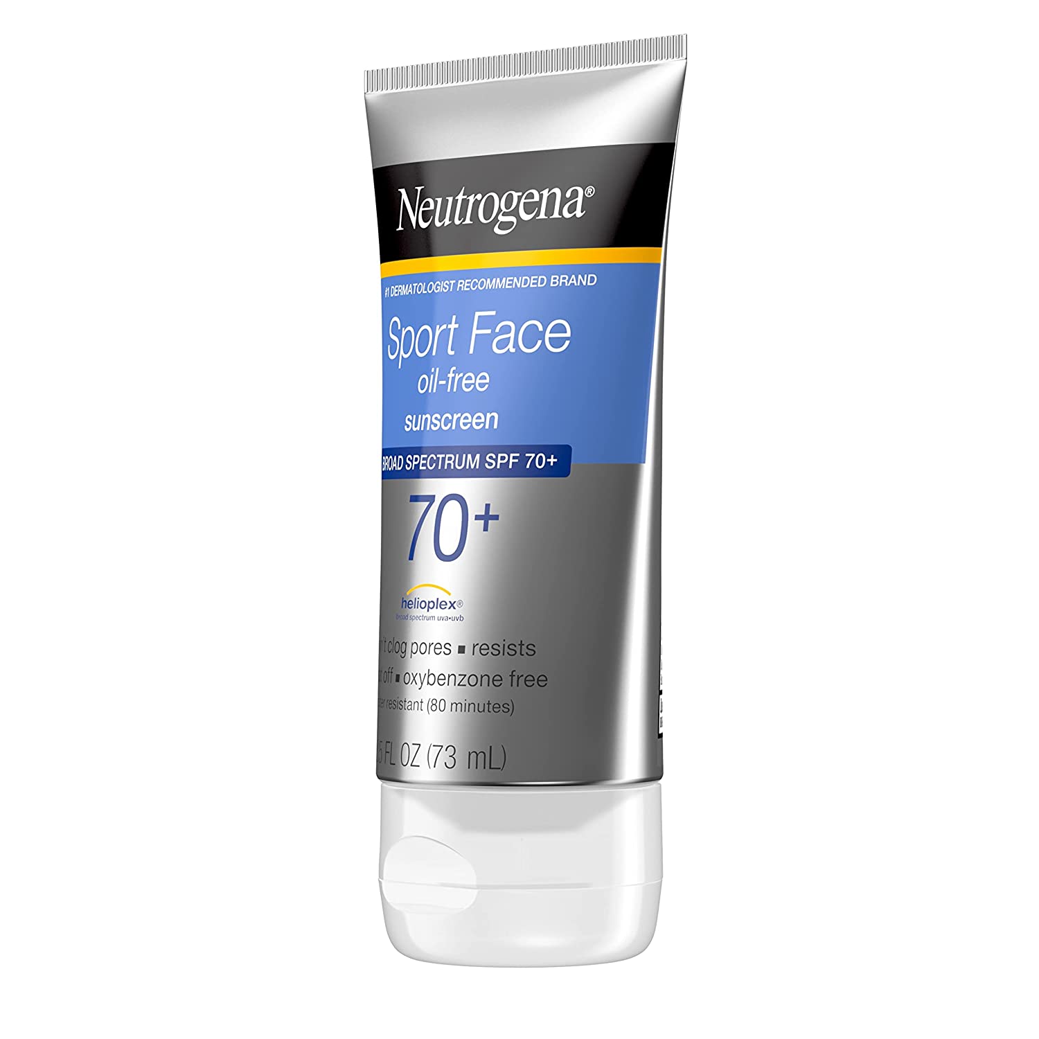 Neutrogena Sport Face Oil-Free Lotion Sunscreen, Broad Spectrum SPF 70+, Sweat and Water Resistant Active Sunscreen, 2.5 Liquid. Ounce